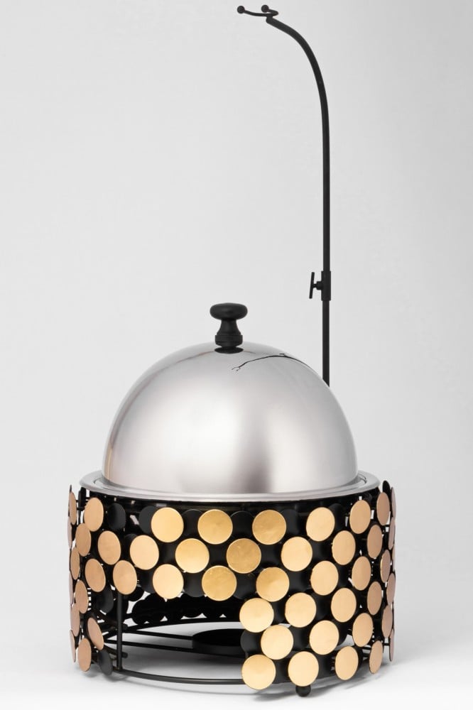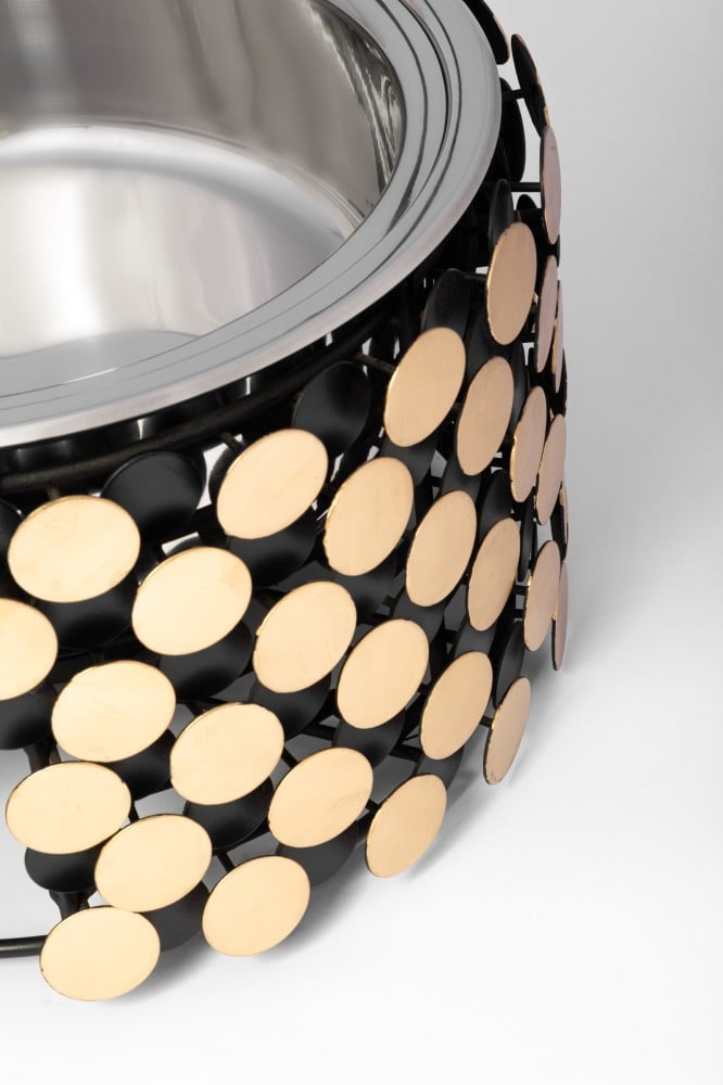 سخان هندي أسود ودوائر ذهبية بغطاء فضي بعدة أحجام