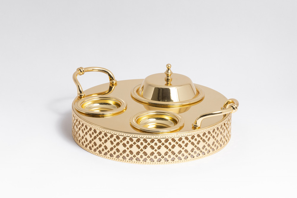 تمرية ذهبي 3 قطع وتبسي دائري بمقابض ذهبية