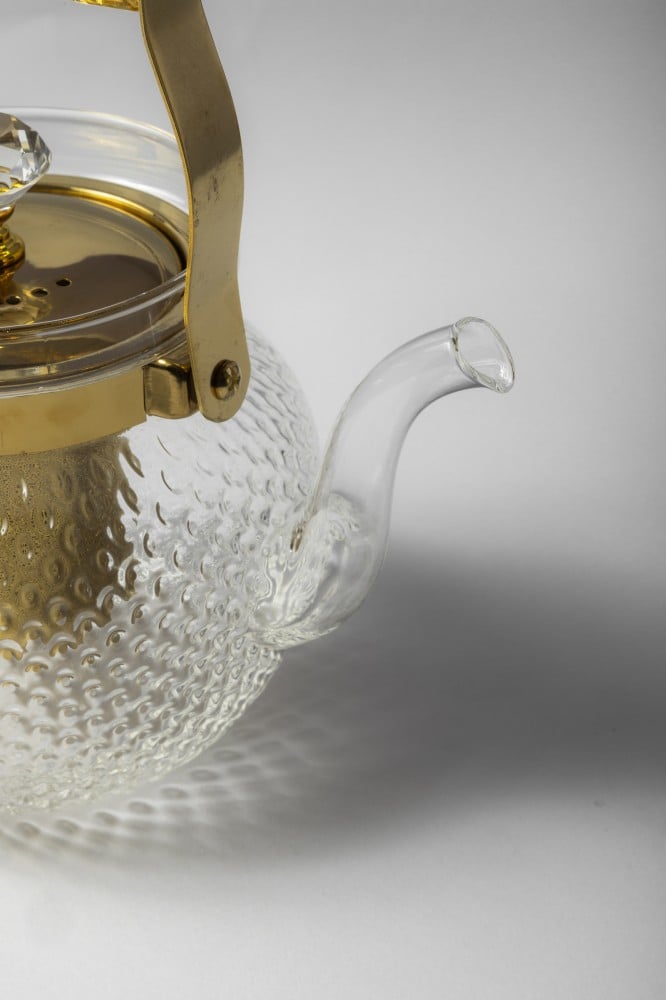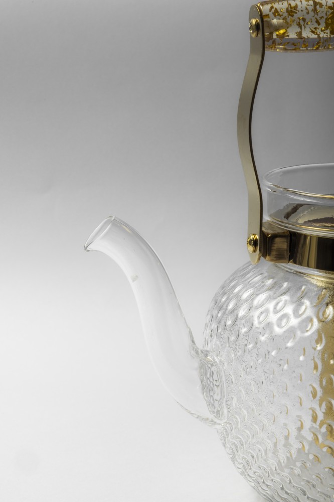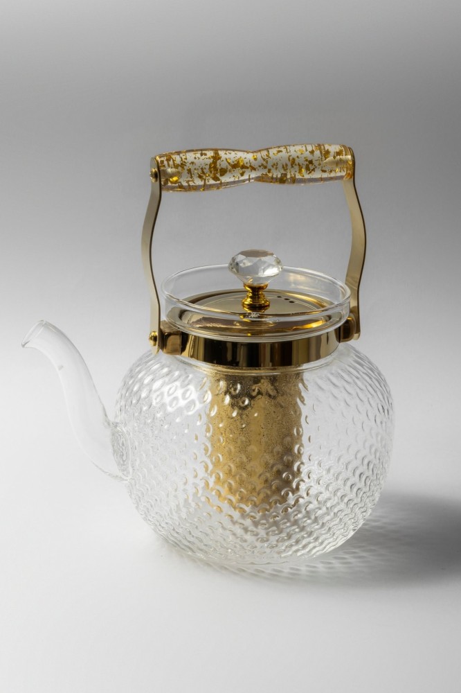 براد زجاج ومعدن باللون الذهبي مع مصفاه