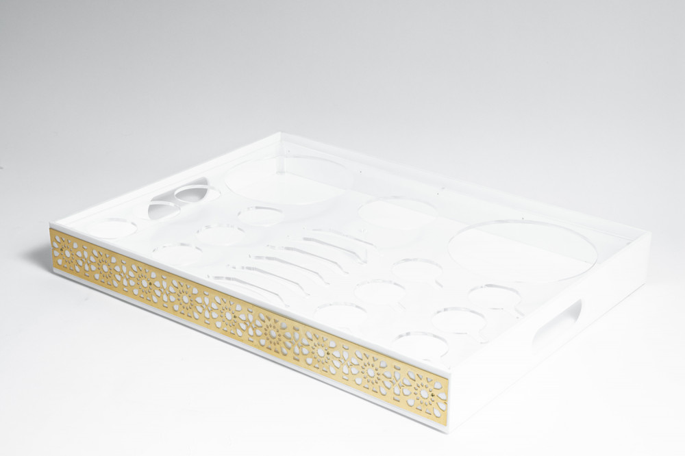 صينية تقديم أكرلك أبيض ونقشات ذهبية مفرد