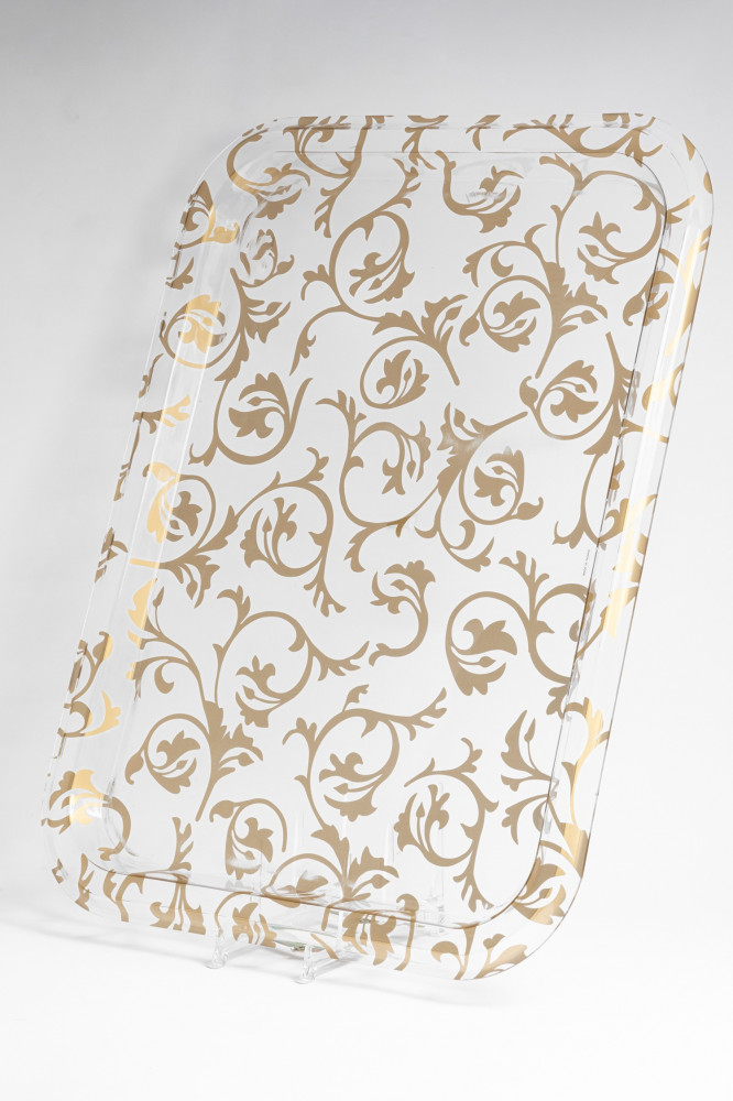 صينية او تباسي اكرليك شفاف بطبعة زخارف ذهبي
