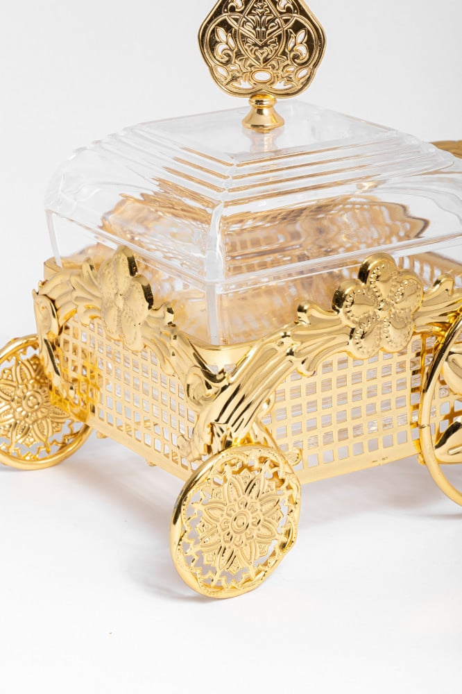 مقاس العربة الاستيل الذهبي :طول (18) سمعرض (12) سممقاس التمريات الأكرلك متساوية (3) قطع :طول (11.5) سمعرض (11.5) سمعمق (7) سم...