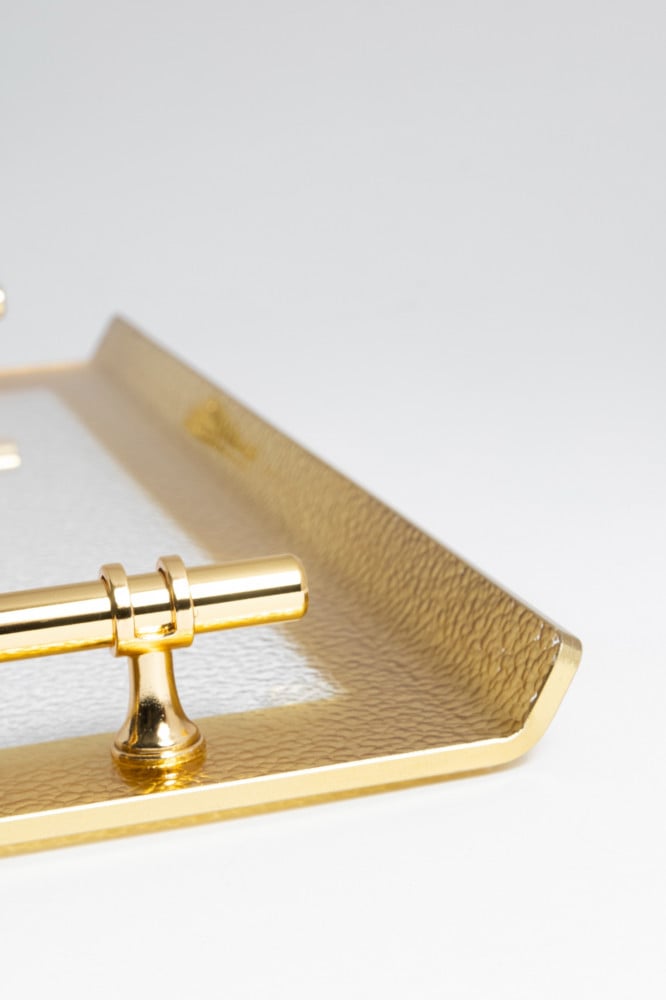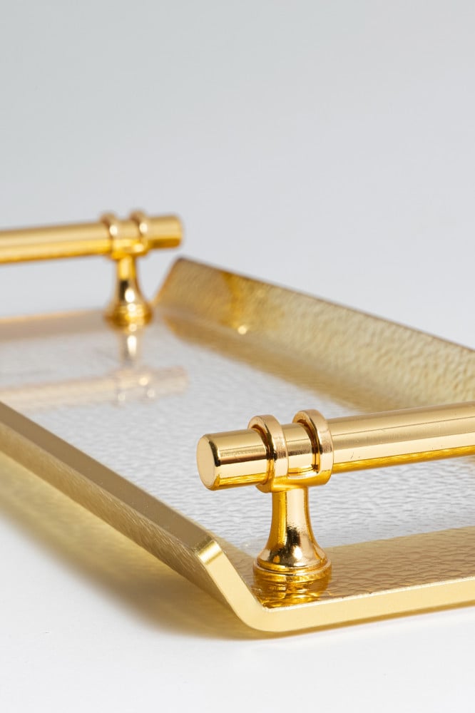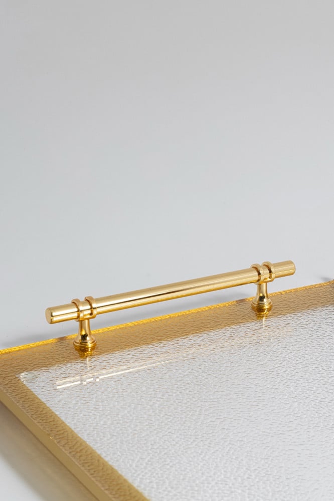 تبسي فاخر من الأكريليك الشفاف اللامع، يُقدم بتصميم ثلاثي القطع (كبير/وسط/صغير) بلمسات ذهبية عصرية. يتميز بـ:إطارات ذهبية بارزة على حواف كل قطعة، تُضفي لمسة ملكية.مقابض ذهبية منفردة لكل ...