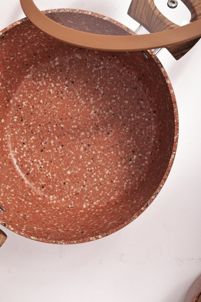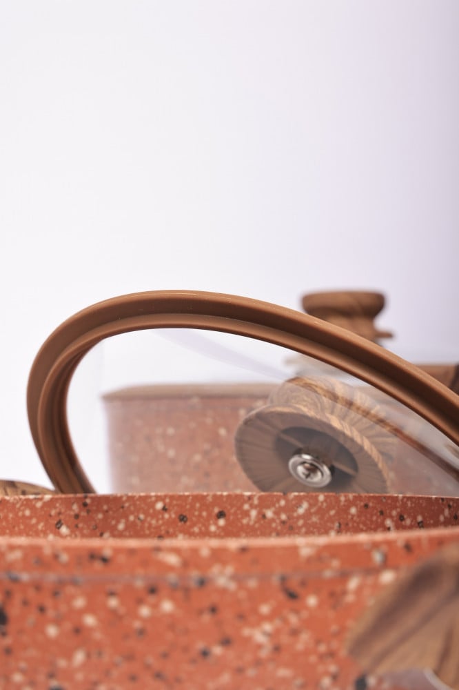 أطهي ما لذ وطاب لكل العائلة والأحباب مع طقم قدور شيلد الفاخر جداً والمصنوع من أجود أنواع الجرانيت الغير قابل على التفاعل مع الأطعمة وتحت أي درجات حرارة مختلفة طقم القدور من شيلد لا يتفاعل مع المأكولات تحت درجات الحرارة فقد صُمم بلون بني مع أغطية زجاجية شفافة لتكون عملية محكمة وآمنة تعمل على حبس البخار والحرارة لفتره أطول ويزيد روقاً وجمالاً لقدورك أيضاً تمنحك نظام غذائي صحي عن طريق الطهي بأقل كميه من الزيت فهي مقاومه لالتصاق تماماً أيضاً تتمتع القدور بزوايا مستديره لتنظيف سهل وهيكل مدعم يدوم معك طويلاً كما أنها تتمتع بتقنيه التوزيع الحراري الذكي لنضج ممتاز وطهي سريع .