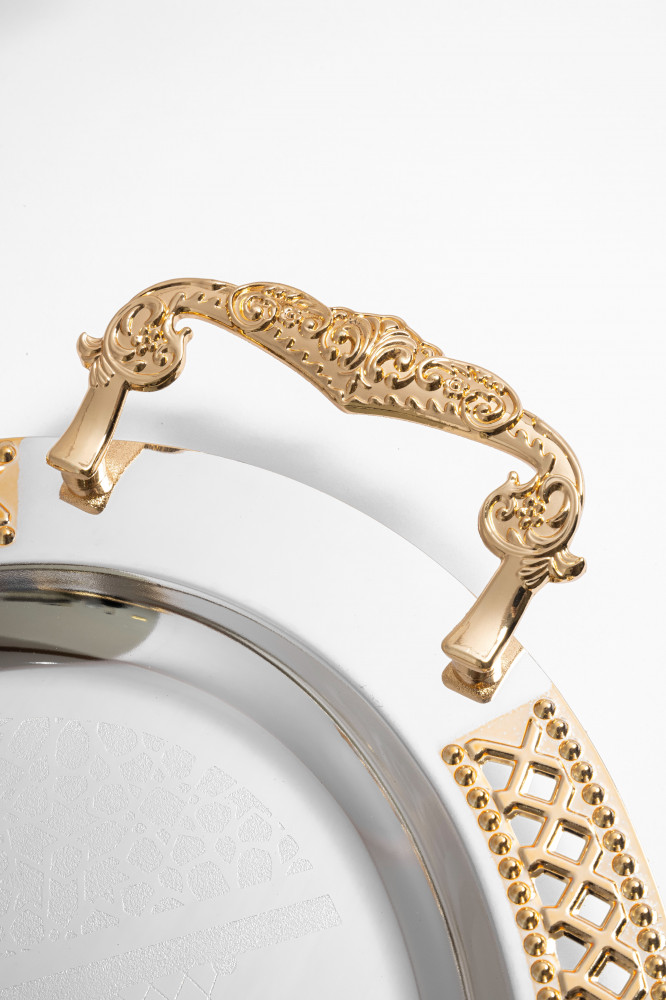 اشتري من متجر ارقى للضيافة الفاخرة (تباسي بيضاوي بلونين 3 قطع)مقاسات الصوانيتحتوي ع 3قطع بيضاوي الشكل بلون ذهبي مميز وشكل جميل وبراقمصنوع من مواد ذات جودة ممتازة لاستخدام طويل الأمديتكون التبسي من ثلا...
