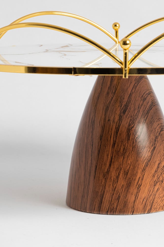 صينية تقديم حلا بقاعدة خشبية وإطار ذهبي