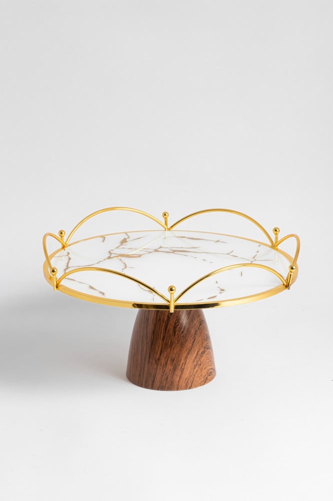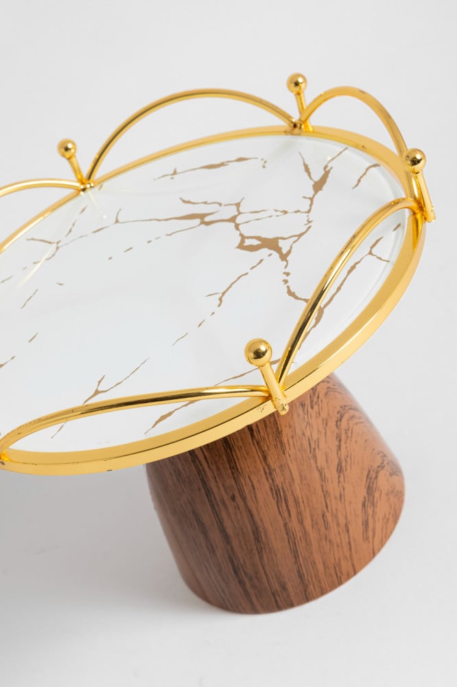4. صينية تقديم حلا بقاعدة خشبية وإطار ذهبي