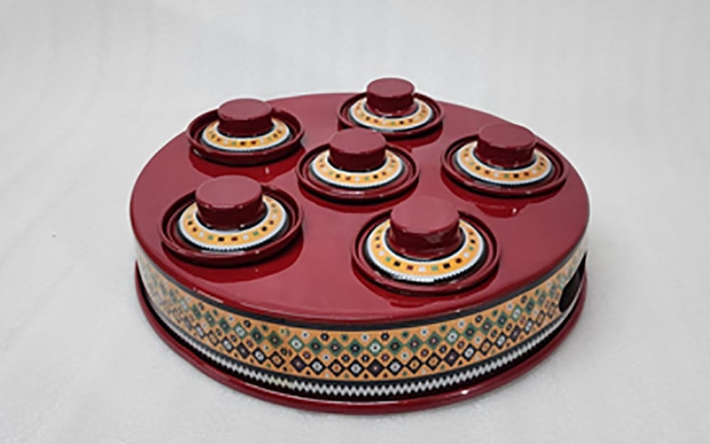 مقاس التبسي الدائري الكبير :قطرها (43) سمارتفاع (8) سممقاس التمريات الداخلية متساوية (6) قطع :قطرها (12) سمعمق (7) سم...